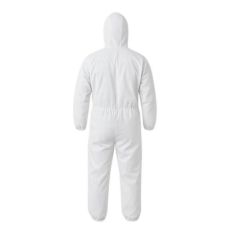 Buzo desechable de tela microporosa blanca que proporciona protección contra polvo, suciedad, grasas y salpicaduras leves de aerosoles. Cuenta con cierre frontal con solapa, capucha, elásticos en tobillo, puños y cintura